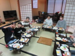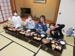 おはようございます。子供たちはよく寝て?、朝は元気です。今日も1日、楽しく安全に過ごしたいと思います。8:30頃、旅館を出発します。今、朝食をおいしそうに食べています。