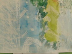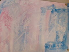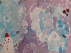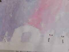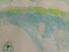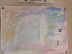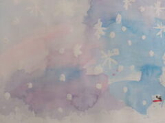 1年生は図工で、にじみを使ってふゆのせかいを表現していました。(一部紹介します。)