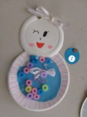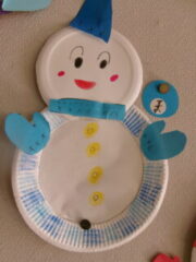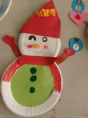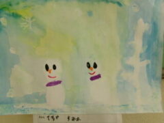 1年生は図工でかわいい雪だるまをつくりました。それぞれ個性があります。(1部紹介します)