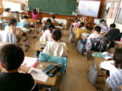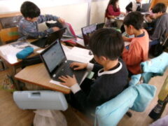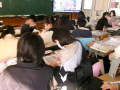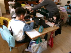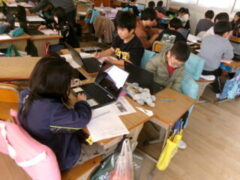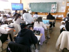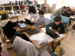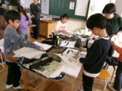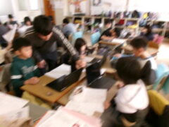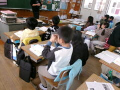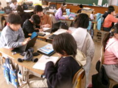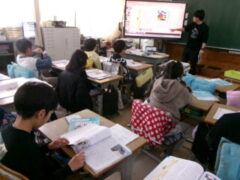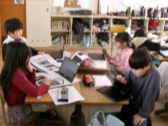 3年生は国語で昔の道具やその移り変わりについて調べてシートに分かったことを書き込んでいました。