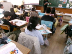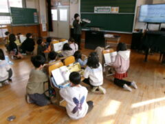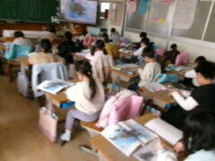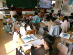 1年生は国語でスイミーの学習をしていました。このこの時間は、スイミーたちがおそろしいマグロに襲われるところ学習していました。