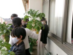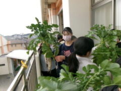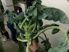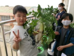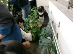 5年生は南側ベランダで収穫していたブロッコリーを収穫していました。収穫祭で調理するそうです。とても大きなブロッコリーでした。大根も大きかったです。