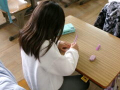 1年生は6年生の送る集会に向けてプレゼントづくりを作っています。この時間は、なかよりグループのリーダーに「ありがとう」の感謝の気持ちを込めてメッセージを書いていました。