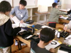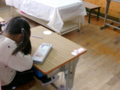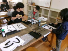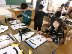 3年生は書写で「つり」を書いていました。「とめ」「はね」に気を付けてがんばっていました。