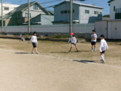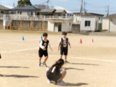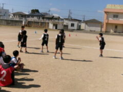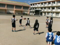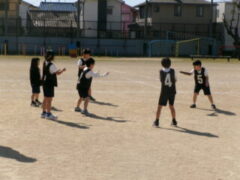 3年生は体育でアルティメットに取り組んでいます。この時間は、チームでの練習の仕方を学びました。