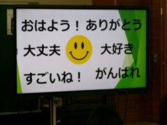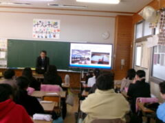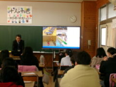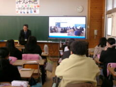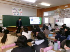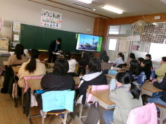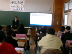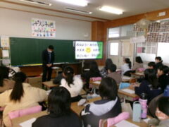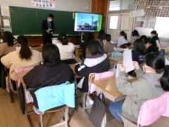 西和中学校の先生方が今福小の6年生に出前授業に来て頂きました。前半は、担当の先生から小学校や中学校の生活の違いのお話があり、子供たちは興味をもって聞いていました。そして、ある中学生の人権作文を通して、「おはよう」「ありがとう」「すみません」などのあいさつや人が喜ぶ声掛けが素直にできることや人の気持ちを考えて行動するということの大切さなどを教えて頂きました。