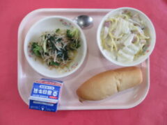 今日の給食は、パン 牛乳 クリームパスタ ツナサラダ です。