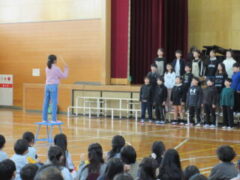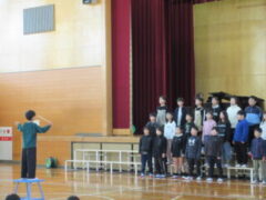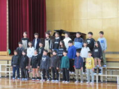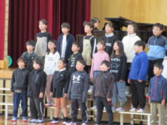 4年生はが吹上小学校で6校交流音楽会がありました。プログラムの順番は、吹上小、芦原小、広瀬小、今福小、砂山小、宮前小でした。前半3校の発表の後、参加児童全員が立って「どんな人が好きですか」をみんなで歌いました。歌詞にもありすが、「右の人にトントン」「左の人にトントン」「まわりの人に トントン」のところを楽しそうにトントンしていました。さて、いよいよ、4番目、今福の出番になりました。やはり緊張はしていましたが、学校紹介のあいさつは、大きな声で堂々と頑張っていました。そして、「もみじ」「世界を旅する音楽教室」の2曲を歌い抜きました。舞台から戻ってきた子供たちの顔は、達成感に満ち溢れていました。4年生の大きな思い出になったと思います。ほっとしたのか、帰りは歩きながら「もみじ」を歌っていました。