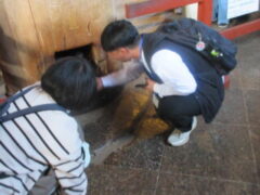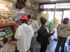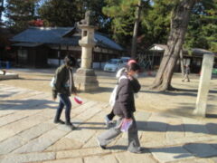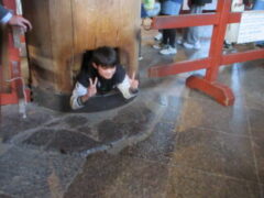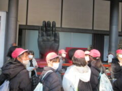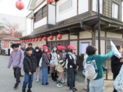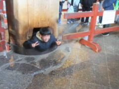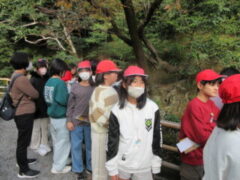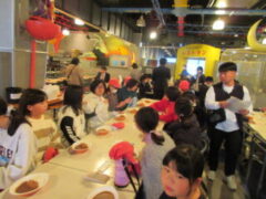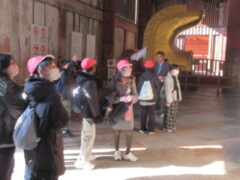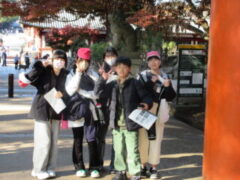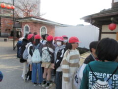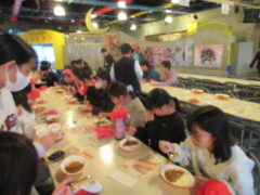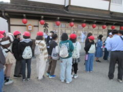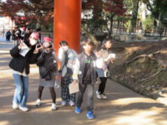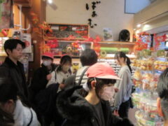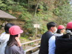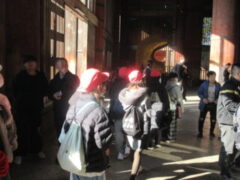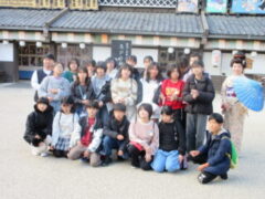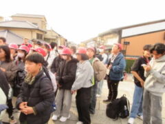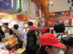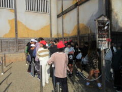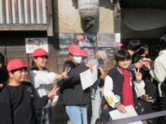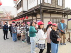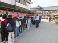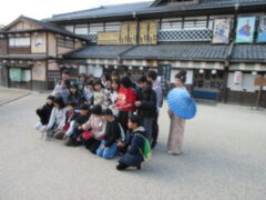 最終見学場所、京都太秦に着きました。早速、集合写真を撮りました。そして、食堂でお昼を食べました。子どもたちは、早く食べて、早速、グループに分かれてアトラクションを見に行きました。どのグループも最初は、お化け屋敷でした。