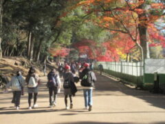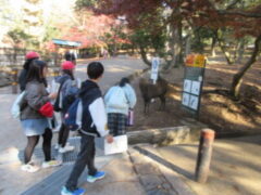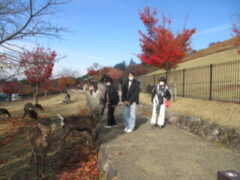 奈良公園に着いてから東大寺を目指しました。外国の観光客も多くいました、もみじの紅葉がみられました。