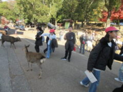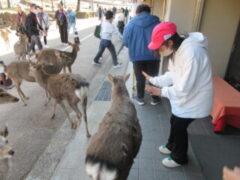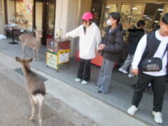 白銀屋でお弁当を食べました。みんなおいしそうに食べていました。(朝早くからお弁当づくりご苦労様でした)。そして、おみやげを買って、鹿と戯れました。