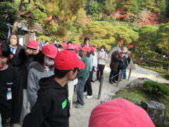 銀閣寺も紅葉がきれいでした。室町のわび。さびの世界を堪能しました。子供たちは、少し疲れてきたでしょうか。次は清水寺です、。また、元気が出てきそうです。