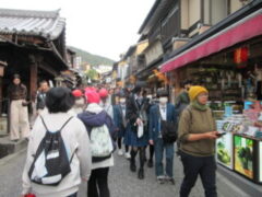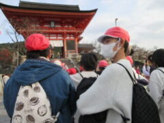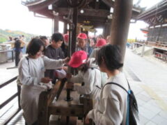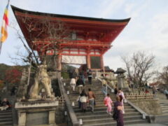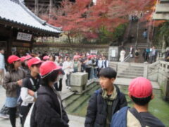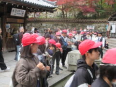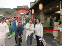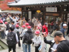 清水寺では、紅葉も見ながら音羽の滝や買い物をしました。子供たちは復活したように笑顔いっぱいで楽しそうでした。清水寺を漫喫していました。