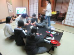 清水寺から旅館に着きました。団体行動でも行儀がよく、ガイドさんのお話にも明るく受け答えしているので、たくさん褒めて頂きました。各部屋でくつろぎながら夕食を待っています。みんな元気です。