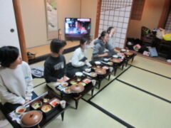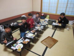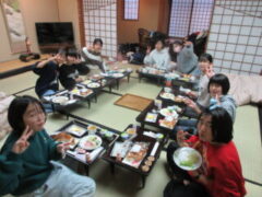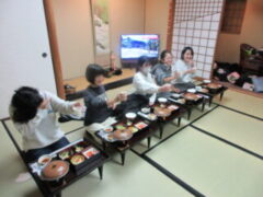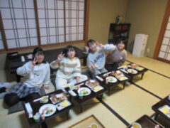 おはようございます。子供たちはよく寝て?、朝は元気です。今日も1日、楽しく安全に過ごしたいと思います。8:30頃、旅館を出発します。今、朝食をおいしそうに食べています。
