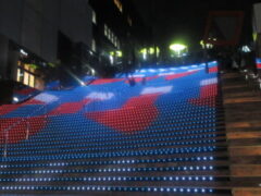 京都の烏丸御池駅の地下鉄に乗って京都駅に向いました。地下鉄に乗ることが初めての子供が多かったです。京都駅に着いてから京都タワーに上りました。展望台から見る京都の夜景はきれいでした。次に京都駅に移動してイルミネーションを楽しみました。