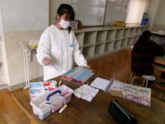 4年生は社会福祉協議会の方たちに来て頂き、車いす体験をしました。車いすの仕組みや操作を教えてもらってから、くねくね道、段差のある道、道幅が狭いところ、幅が狭い通路、カーブのあるところ(円)など4つの場所を通過しながら車を押す体験、乗る体験をしました。最後に・「車いすに乗っている人の気持ちを考えて押すことが大切です。」と教えて頂きました。この体験が実生活で実践できるといいですね。