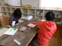 6年生は卒業カレンダーを作っていました。一人1枚、好きな絵を描き、クラスへの仲間へのメッセージ書き入れています。2月13日(金)から日めくりを始めます。いよいよカウントダウンが始まります。寂しいですね。