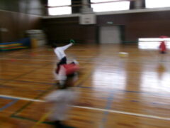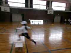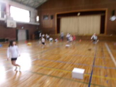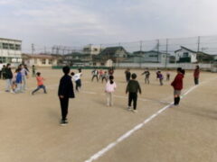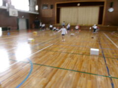 2年生は体育で「折り返しリレー」に取り組んでいました。この時間は、オリジナルコースをタイムを測っていました。オリジナルなので張り切って走っていました。