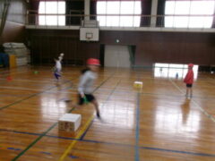 2年生は体育で折り返しリレーに取り組んでいました。この時間は、オリジナルコースづくりを楽しんでいました。