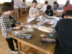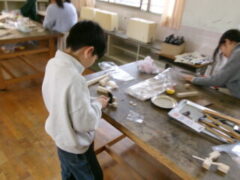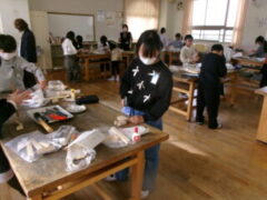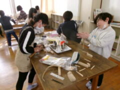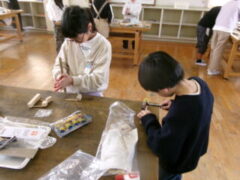 2年生は2学期にケーキ作りに挑戦しましたが、今度は和菓子づくりに挑戦しました。和菓子屋の紫香り庵さんを先生に、きめ細かい和菓子の技能を教えてもらいながら節分の鬼を作りました。なかなか集中して一生懸命作っていました。和菓子のミニマイスターが誕生したかもしれませんね。