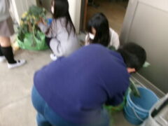 5年生は南側ベランダで収穫していたブロッコリーを収穫していました。収穫祭で調理するそうです。とても大きなブロッコリーでした。大根も大きかったです。