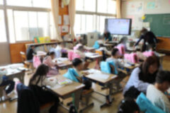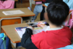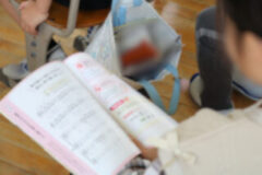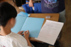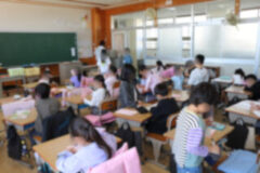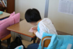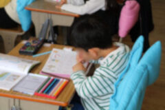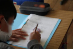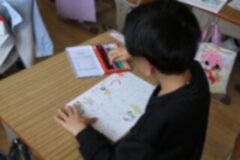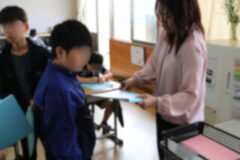ファイルに写しやすいように、プリントを外す子どももいました。