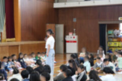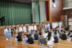 3時間目に、体育館で「1年生をむかえる集会」を開きました。