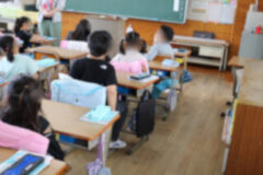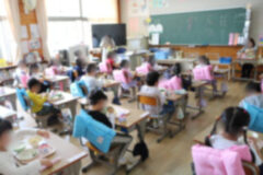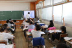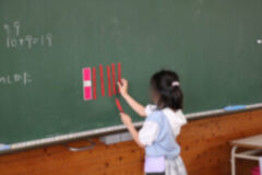 足し算の授業。 ふでばこや教科書、ノートを右端にそろえましょう。