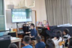 歌を歌った後、音階当てクイズをしたり、アプリを使って授業していました。