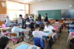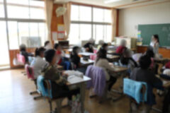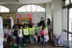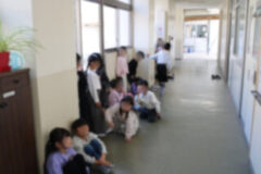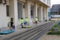 1年生で若竹学級へ行く子どもは、玄関から運動場のほうへ周って移動しています。
