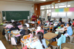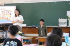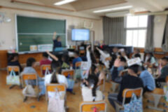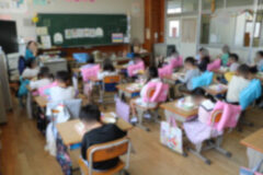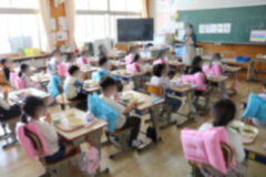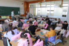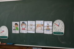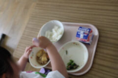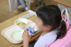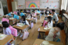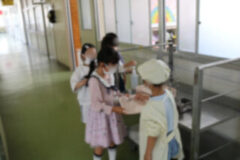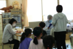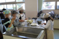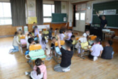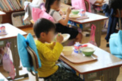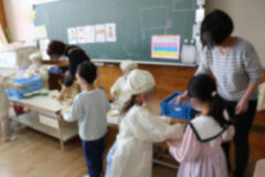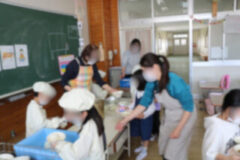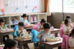 初めての給食は4時間目から説明が始まり、お当番さんが配膳もしました。