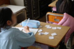 音楽の時間に「かくれんぼ」の曲の練習で、