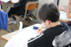シーンとした中、漢字の練習をしていました。(すごい集中力です。)