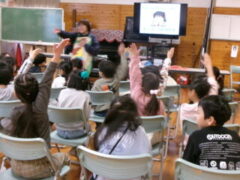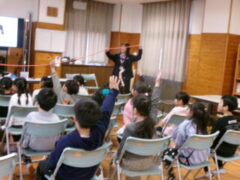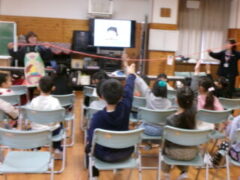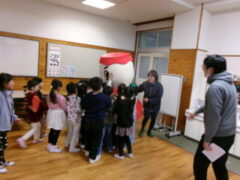 1年生は、先日、1月9日(金))にヤクルトの「おなか元気教室」がありました。まず、質問「朝ご飯を食べましたか」から授業が始まりました。「お腹の中のお話」「うんちのお話」「腸や善玉菌のお話」など、子供どもたちは、健康のためには「早ね、早おき、朝ごはん」と規則正しい生活をし、よいうんちを出すこと、そして、うんちの状態から、食べ物の栄養素を吸収する腸の大切さ、腸における乳酸菌のはたらきを知ることができました。最後に「ヤクルトマン」が登場した時の感動、盛り上がりはすごかったです。「授業がたのしかったね。」とい声がたくさん聞かれました。