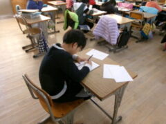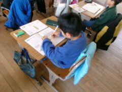 3年生は書写で書初め競書会の練習をしていました。いつも元気いっぱいの3年生、とても集中していました。