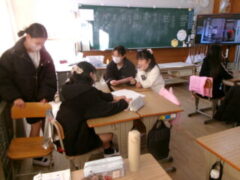 6年生は、グループで冬休みサイコロトークを楽しんだ後、新年のの抱負を考えていました。行動目標を考え、数値を入れたりして具体的に考えていました。