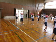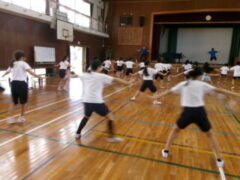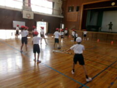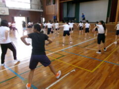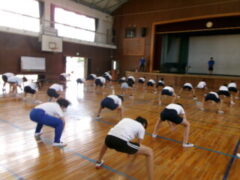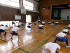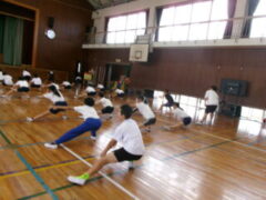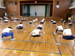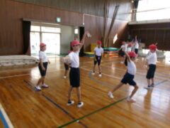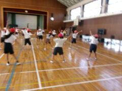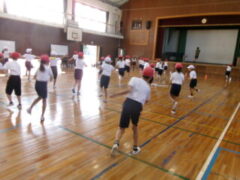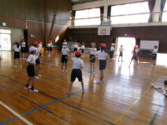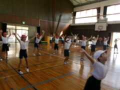 5・6年生は、合同体育で運動会の練習を始めました。この時間は、わくわくワンダーランドの確認とよさいこの練習をする予定です。2時間目体育館でやっていましたが暑かったです。