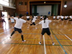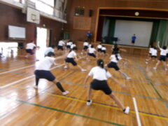 5・6年生は、3時間目、体育館でダンス練習をしましした。この時間からきめ細かいところに気を付けて練習しいました。かまえの姿勢に気持ちが入っていました。仕上げていくのは大変ですががんばりましょう。