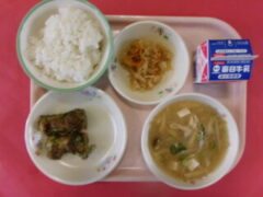 今日の献立は、ごはん 牛乳 ちくわのいそべあげ 切干だいこん みそしる です。
