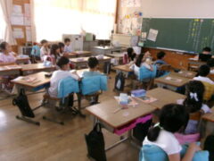 1時間目は、1・2年生はかけっこの練習をしていました。2回は走りました。1回目は、自分のコースを走る練習。2回目は、タイムを計りました。2回目は、1年生と2年生がそれぞれ走っている時、陰に入って応援しました。みんな元気な声で応援していました。1時間目でしたが日差しが強かったです。