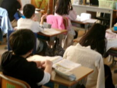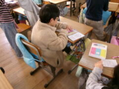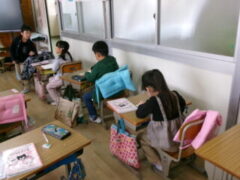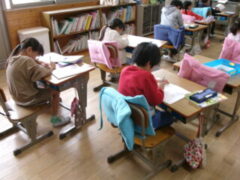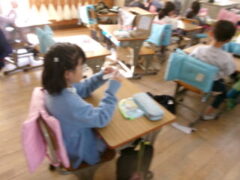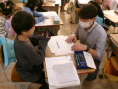 3年生は国語で「こそあど言葉」を学習していました。教科書にある問題をして、友達とペアーになって答え合わせをしていました。