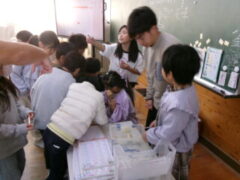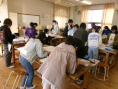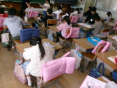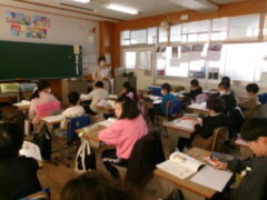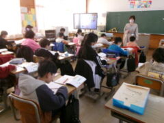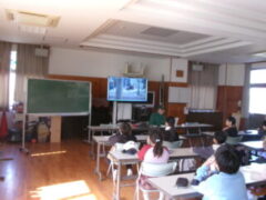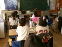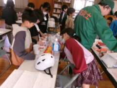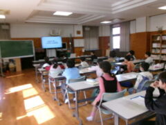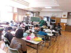 4年生は社会科や総合で防災学習に取り組んできました。この時間は、地域の防災士の方をお招きして学習しました。前半津波の映像を観て、津波の怖さや、実際に津波が来た時の避難についてお話して頂きました。後半は、子供たちが考えた防災バッグの中身を見て頂いて、アドバイスをもらいました。先日の避難訓練で、実際、自分たちは考えた防災バッグを持って逃げましたたが、重さは何と5㎏あったそうです。とても重かったそうです。でも、実際、考えてやってみるとが大切ですね。