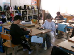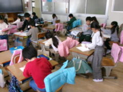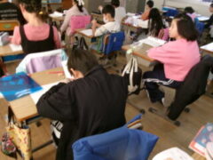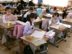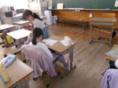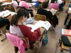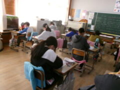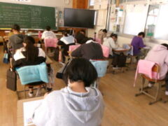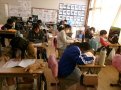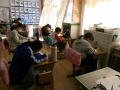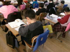 6年生は国語で漢字50問テストに挑戦していました。テスト前の事前勉強も頑張っていました。