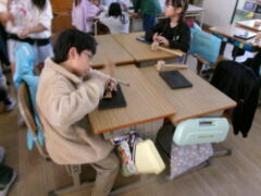2年生は国語で、「パナシェの人気のひみつ」の作文を書いていました。はじめ、なか、おわりを考えながら書いていました。子供たちは、人気のひみつをどんなふうに考えたのか楽しみですね。