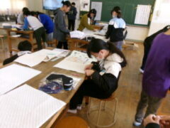 6年生は社会で江戸時代の歴史上の自分物のポスターづくりをしています。今時間も引き続き取り組んでいました。これらのポスターを見ると、人物の業績が分かるのでしょうね。どんなポスターになるのか楽しみです。