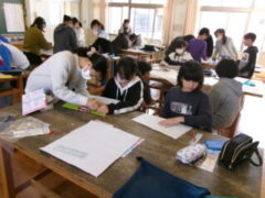 6年生は総合で江戸時代の歴史上の人物6名、それらの人物のポスターをグループで協力して作っていました。