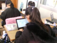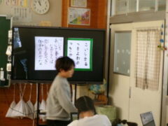 5年生は書写で百人一首のカードづくりに取り組んでいました。まず、端末機でどの百人一首するか選んでいました。
