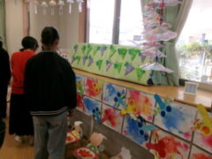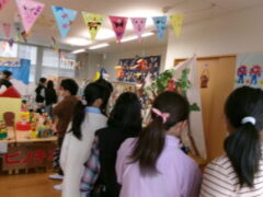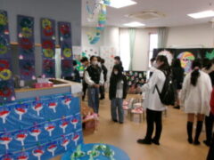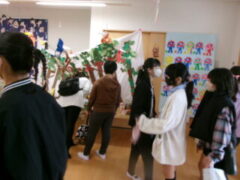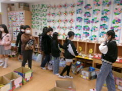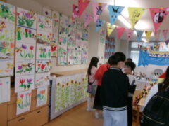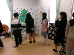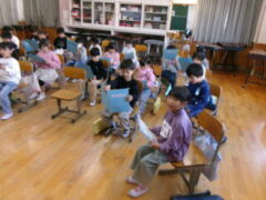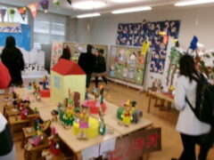 5年生は、地域あるむつみこども園にお伺いしました。先日、11月8日(土)に園の文化祭が開催され、とてもにぎわった文化祭になったそうです。その後に、5年生の子どもたちが訪問して作品を見せて頂きました。年小、年中、年長のそれぞれのクラスがその年のテーマを決め、年間計画を立てて作品づくりに取り組むそうです。季節感のさる作品、絵本の話の作品など身近な材料を工夫して使ってかわいくてアイディアに富んだ作品が多く見られました。どの教室に入ってもこころがほっこりしました。最後にお互いに整列してプレゼント交換をしました。11月下旬にむつみのお友達が今福小学校へ遊びに来てくれます。どんな交流になるのか。とても楽しみです。