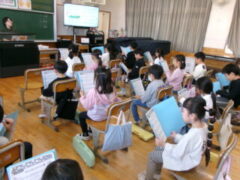2年生は音楽で「山のポルカ」を合奏していました。ピアニカを中心に、カスタネット、タンバリンも使っていました。めあては「はくにのって 楽しくがっそうしよう」でした。